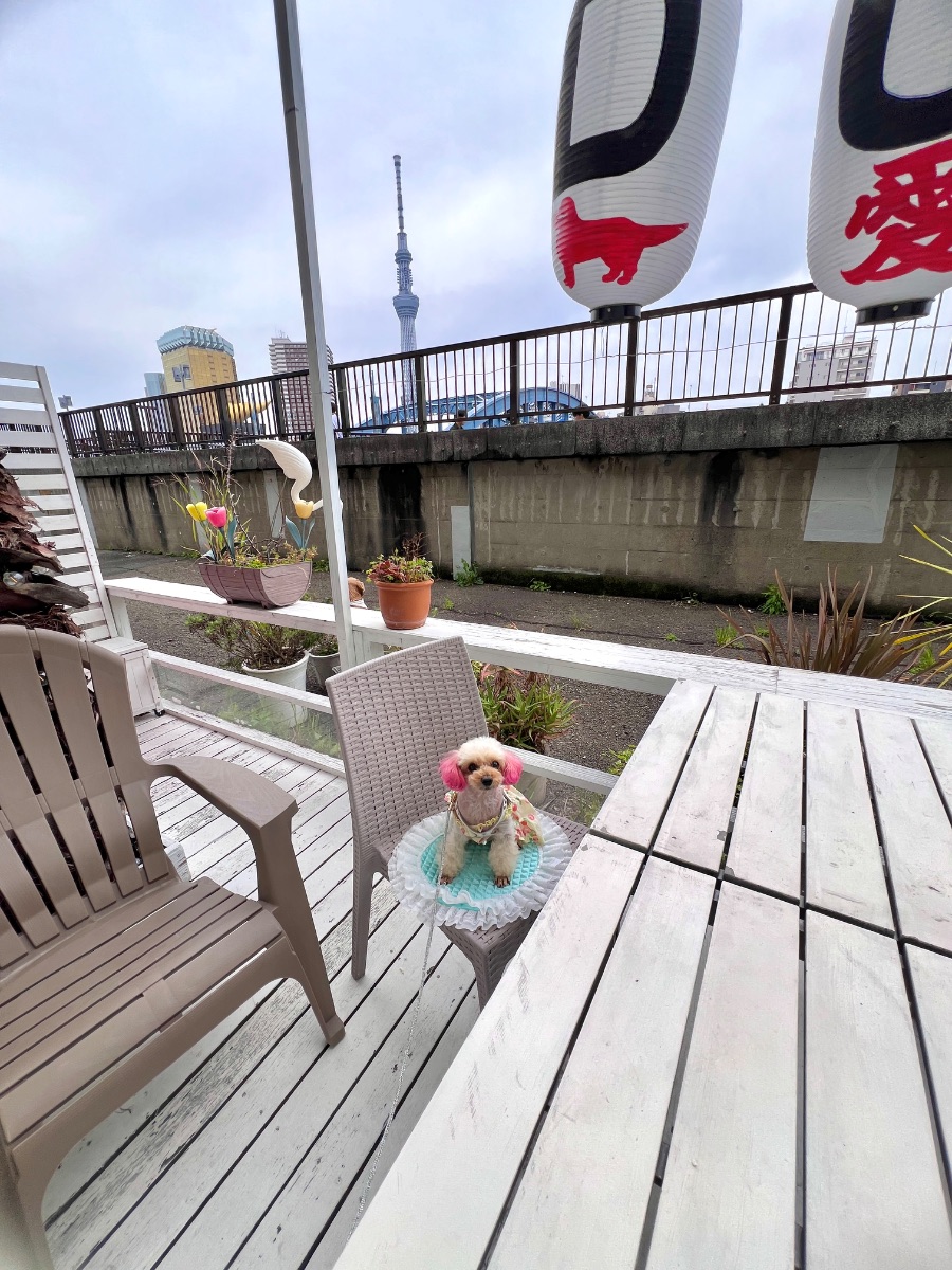 店内やテラスからスカイツリーが見えるドッグカフェ。 訪れた日はあいにく店内が満席でテラスしか空いてなかったけど、お天気も気温も過ごしやすくてテラスが最高でした! 1Fが物販とテラス、2Fがカフェになっていたよ〜
