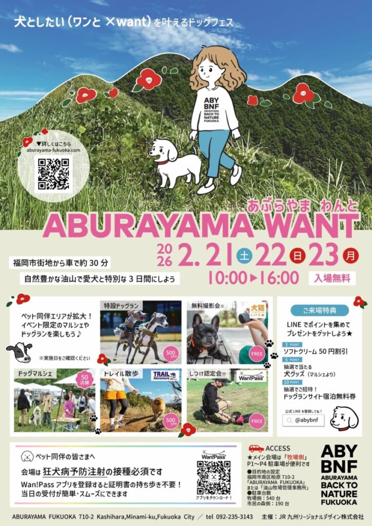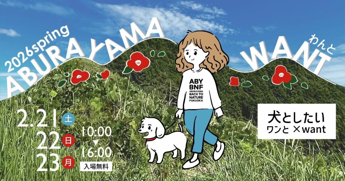 【福岡/犬のイベント】犬と犬・犬と人が一緒に叶えるわんと×WANTなドッグイベント「ABURAYAMA WANT(あぶらやま わんと)」(ABURAYAMA FUKUOKA)2/21〜23