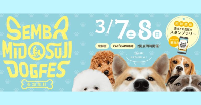 【大阪/犬のイベント】愛犬と楽しみながら学ぼう!大階段での集合撮影会も「SEMBA MIDOSUJI DOGFES」(北御堂・CAFÉGARB 跡地)3/7~3/8