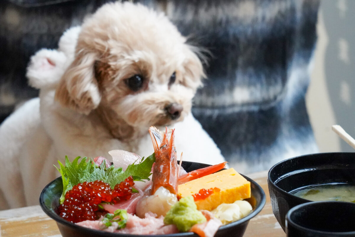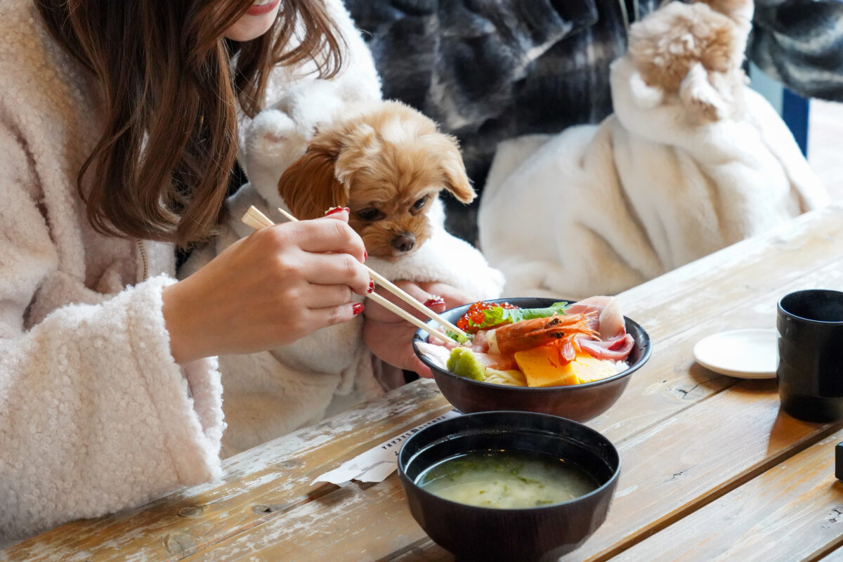 「天丼うしおや」「海鮮食堂とみうら亭」のテラス席では、愛犬と一緒に食事が楽しめます。