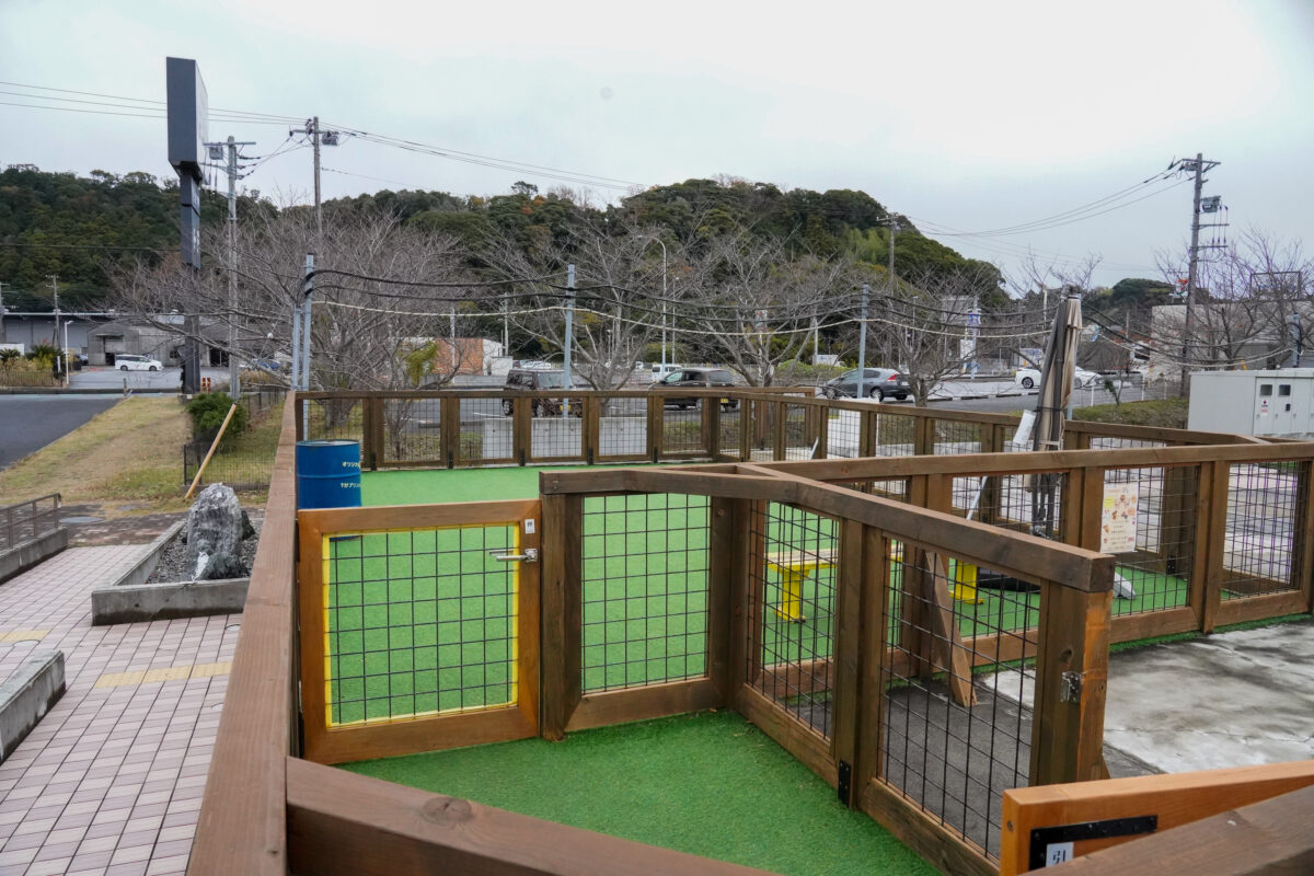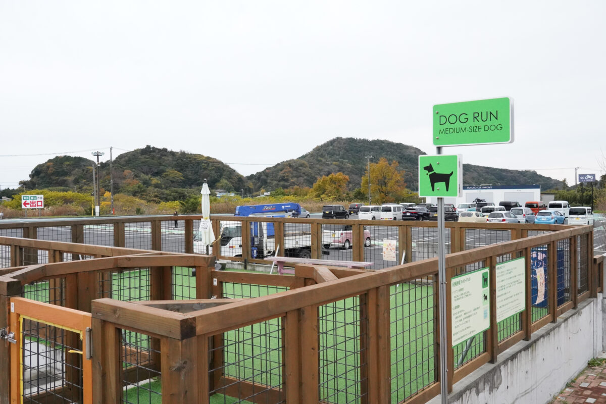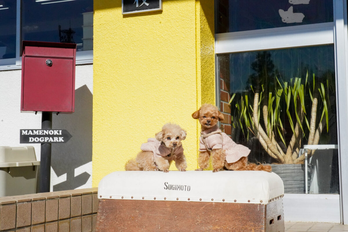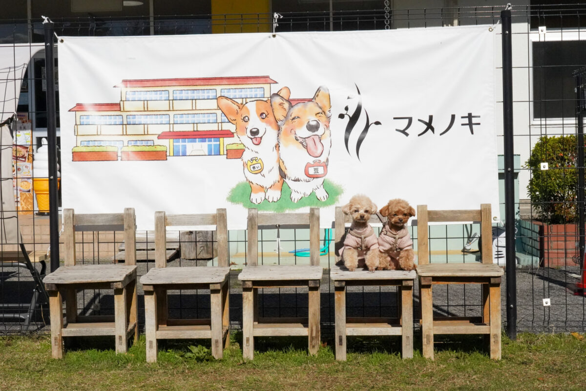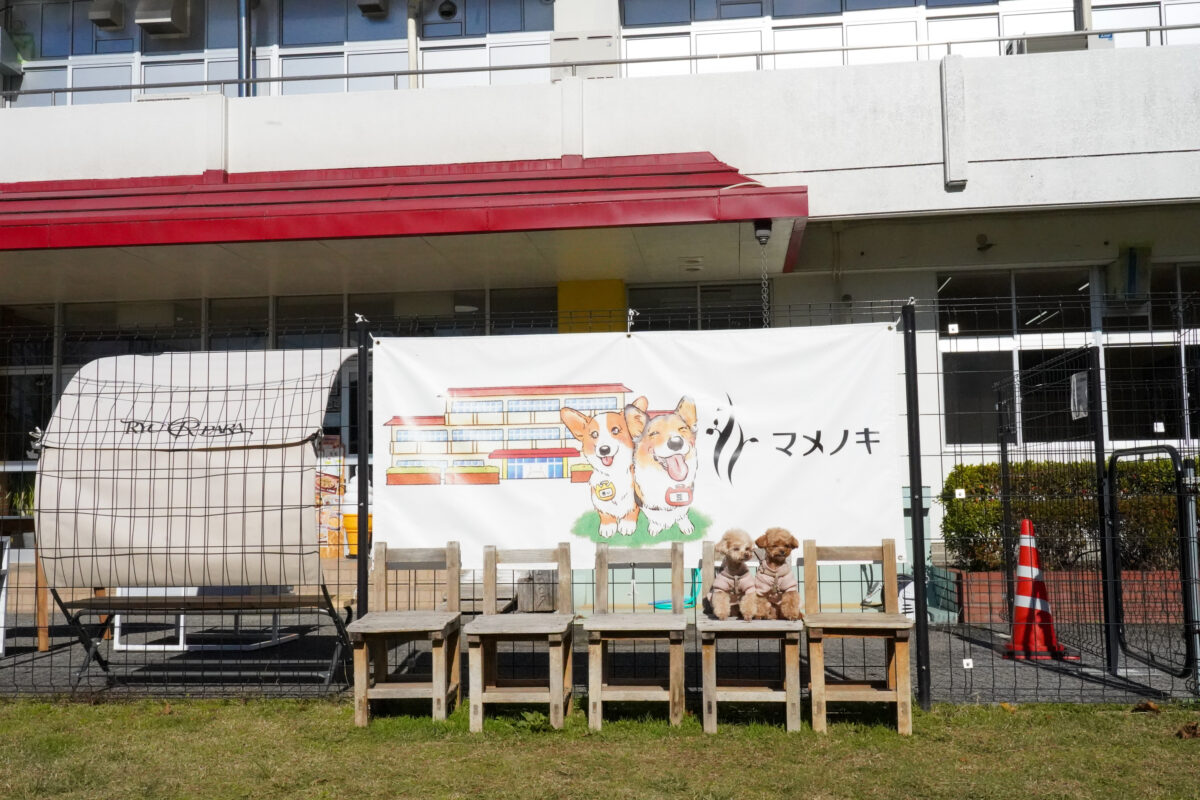 チェックアウト後、ロコちゃん&モコちゃん家族が向かったのは、宿から車で約30分ほどの場所にある「マメノキドッグパーク」。旧・環南小学校の跡地にオープンした、ドッグランとドッグカフェが併設された施設です。