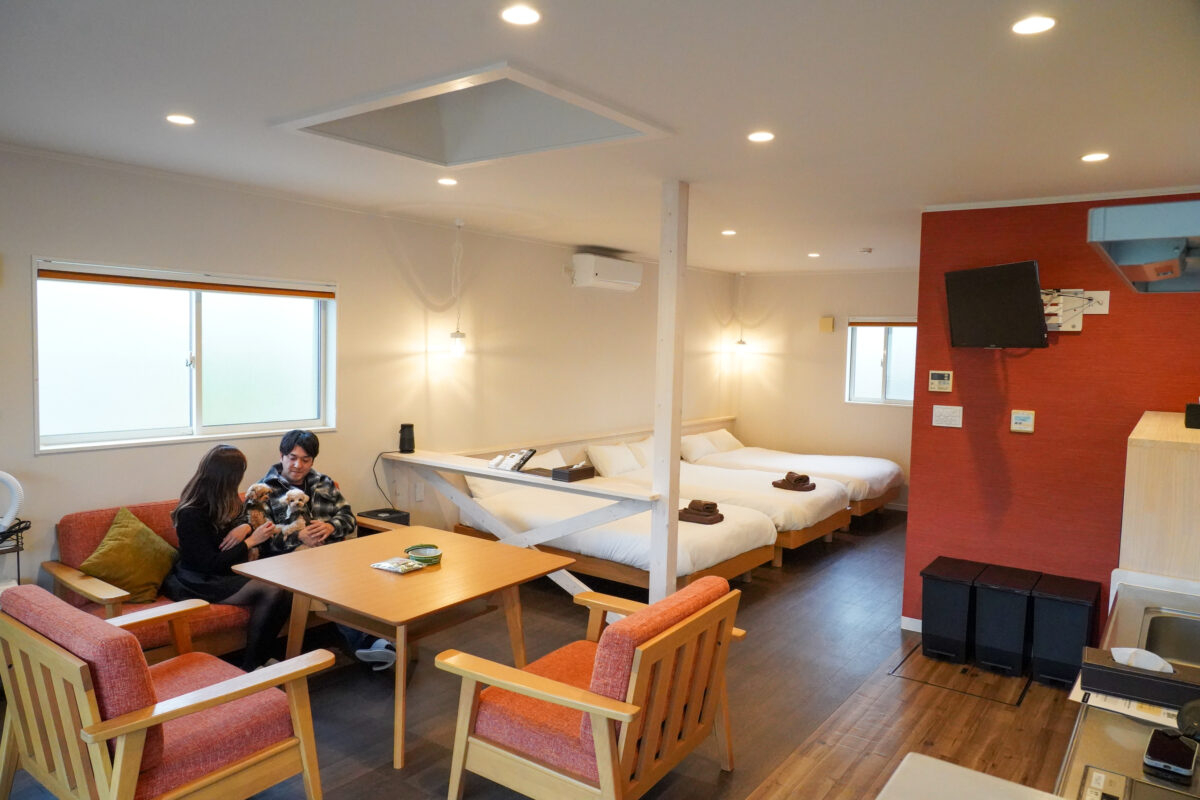 ワンルームで高低差のないつくりのため、滞在中はいつも愛犬と同じ空間でゆったりとお過ごしいただけます。