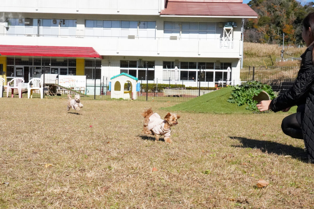 ひろ〜いランに、ロコちゃん&モコちゃんも大喜び! 思い切り追いかけっこして遊びました!