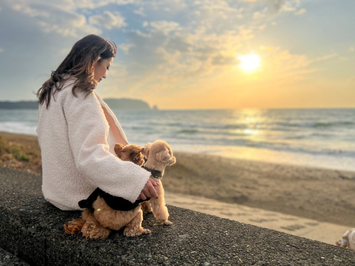 そのあとは、徒歩約1分の海辺へお散歩に。海に沈んでいく夕焼けがきれいで、のんびりとした時間を過ごせました。