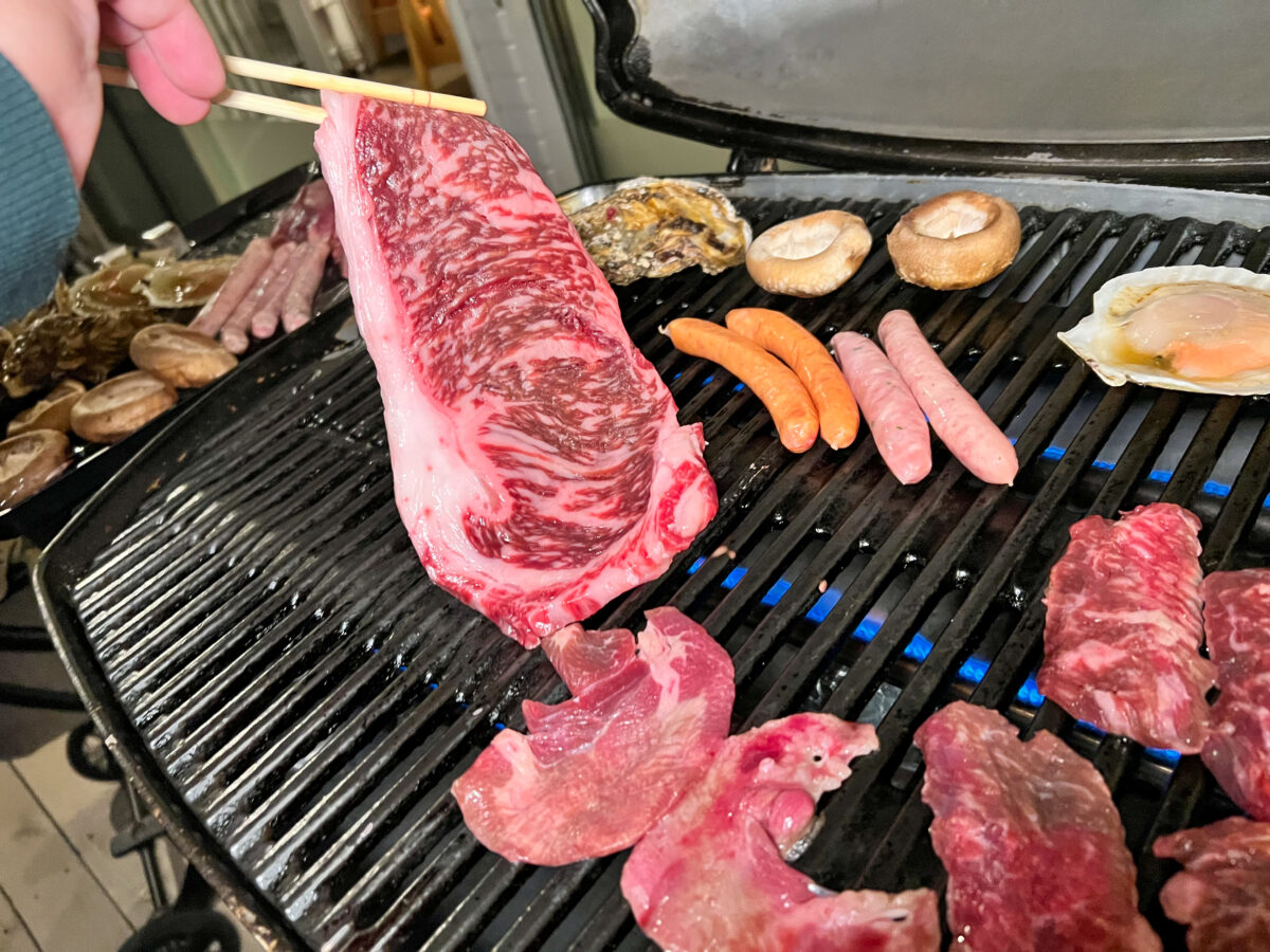 お皿やカトラリーなどの備品はひと通りそろっているので、あとは買ってきた食材を焼くだけ。好きなタイミングで、好きな食材を、気兼ねなく楽しめるのがいいですね♪