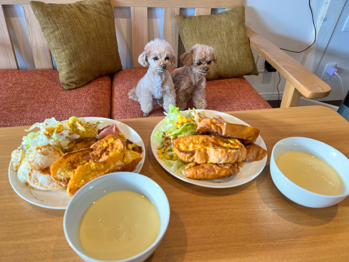 海へお散歩に行ったり、プライベートドッグランで遊んだり、お部屋でのんびり過ごしたりと、朝食後の時間も思い思いに楽しめました。