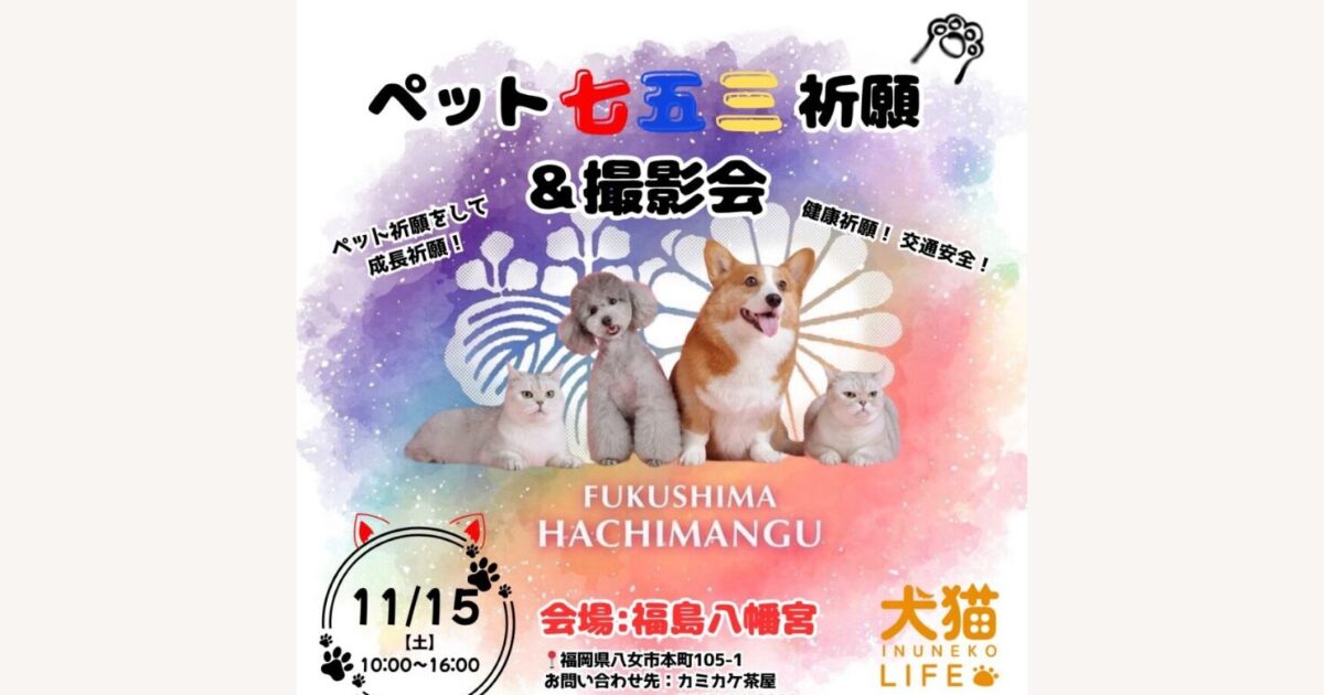 福岡県八女市の福島八幡宮で、11月15日(土)に「ペット七五三祈願&撮影会」が開催されます!