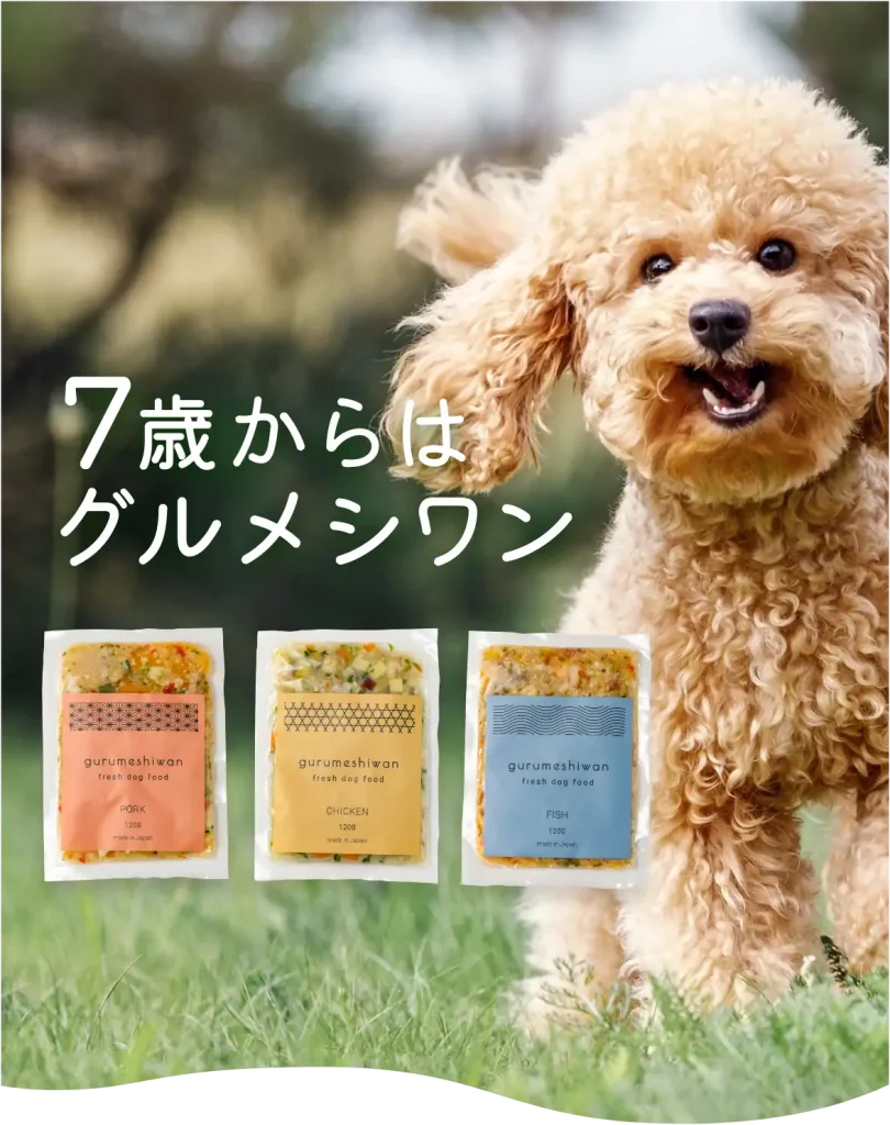 「グルメシワン」は、7歳からの栄養管理や水分補給にもぴったりのフレッシュドッグフード!