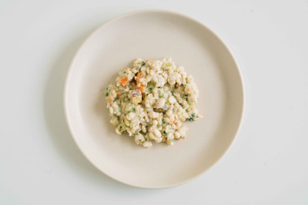 乾燥させたドライフード等とは異なり、フレッシュドッグフードである「グルメシワン」には、たくさんの水分が含まれています。そのため、シニア期に入り、水分の摂取量が減ったわんこにもおすすめ!水分量が多いフードを食べることにより、食事からも自然と水分を取ることができます。
