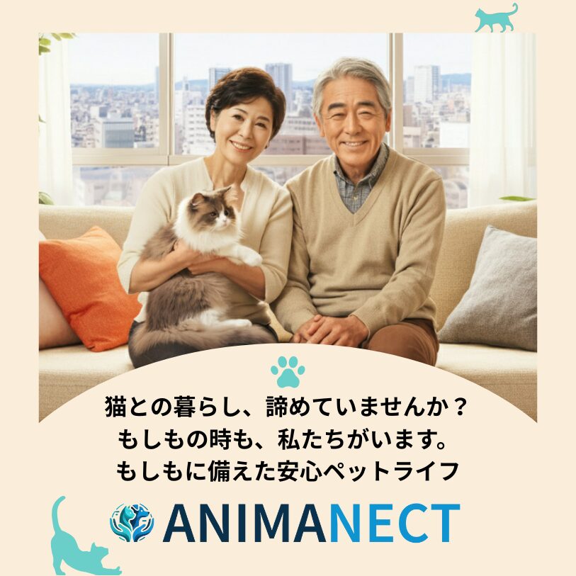 ANIMANECTでは、飼い主さんの「もしも」に備えて、入院や施設入所の際にペットの引き取りを保証しながら、保護猫とのマッチングを行っています。