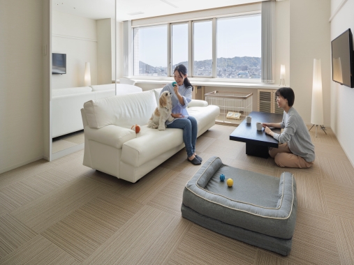 ワインの産地で名高い山梨・長野の県境に位置する、日本を代表するデザインホテル。愛犬ルームはレジデンス棟1F庭付きタイプでとっても広々!