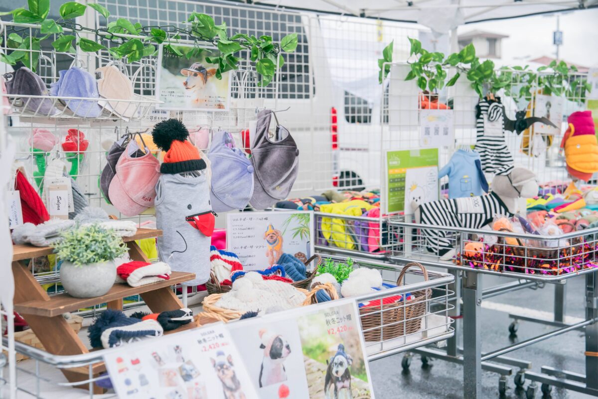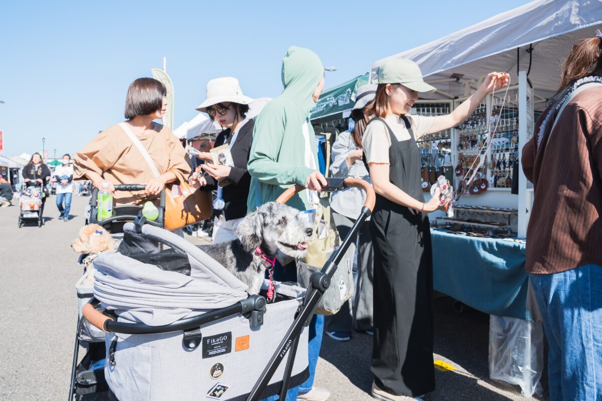 会場には、犬服やおやつ、雑貨の販売にくわえ、ペットと過ごせるキャンピングカーの展示など、愛犬との暮らしやお出かけをテーマにした約50のブースが集結!