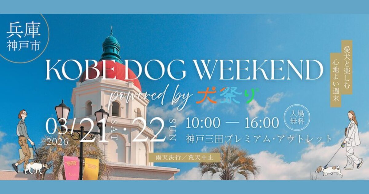 「愛犬と楽しむ心地よい週末」をコンセプトとしたドッグイベント「Kobe Dog Weekend powered by 犬祭り」が、2026年3月21日(土)・22日(日)の2日間、神戸三田プレミアム・アウトレットで開催されます。