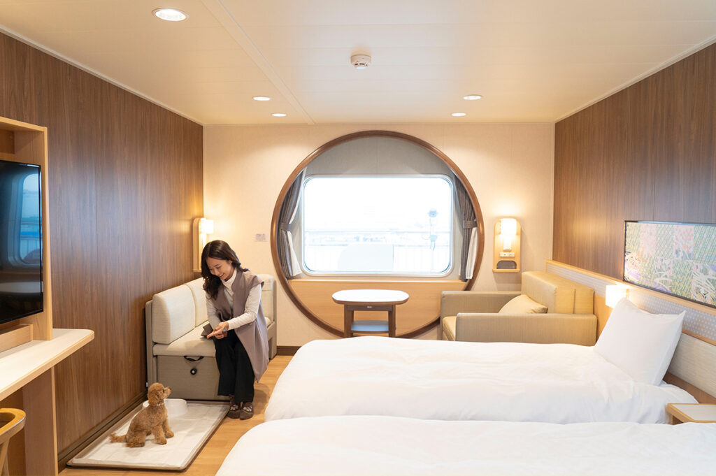 2023年に就航した新造船「さんふらわあ くれない・むらさき」には、愛犬と同じ部屋で過ごせるとっても豪華な「ウィズペットルーム」が7部屋用意されています。