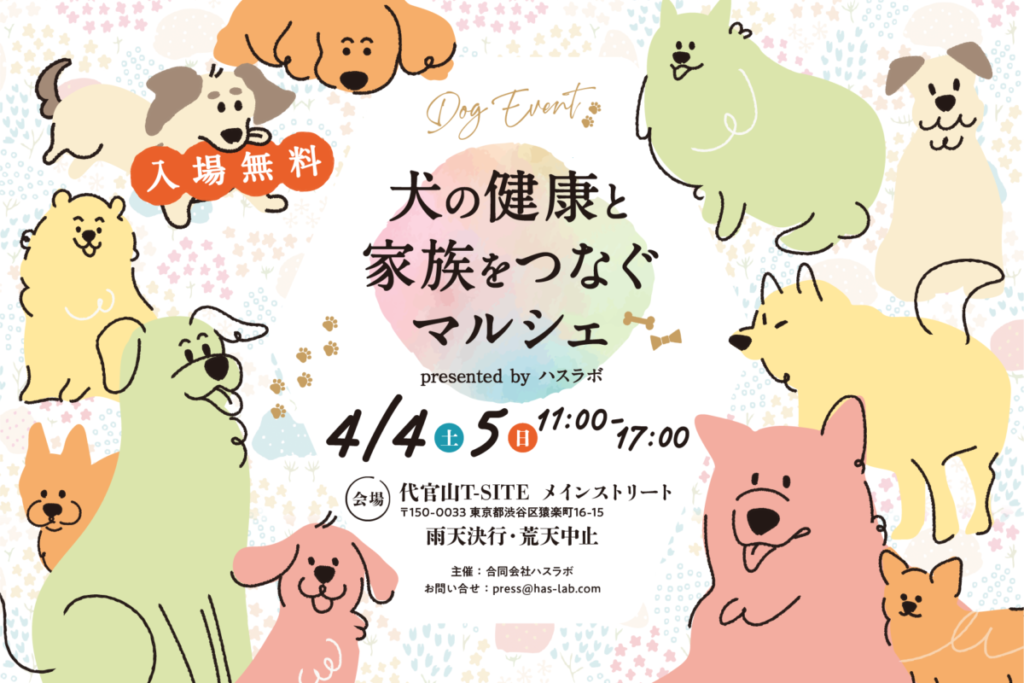 規格外レンコン由来素材「HASKO」を配合した、腸内環境の維持をサポートするトータル健康維持設計型犬用おやつ「HASWAN(ハスワン)」の発売を記念して、愛犬の健康と家族のつながりをテーマにした体験型イベント「犬の健康と家族をつなぐマルシェ」が、2026年4月4日(土)・5日(日)の2日間、代官山T-SITEで開催されます!