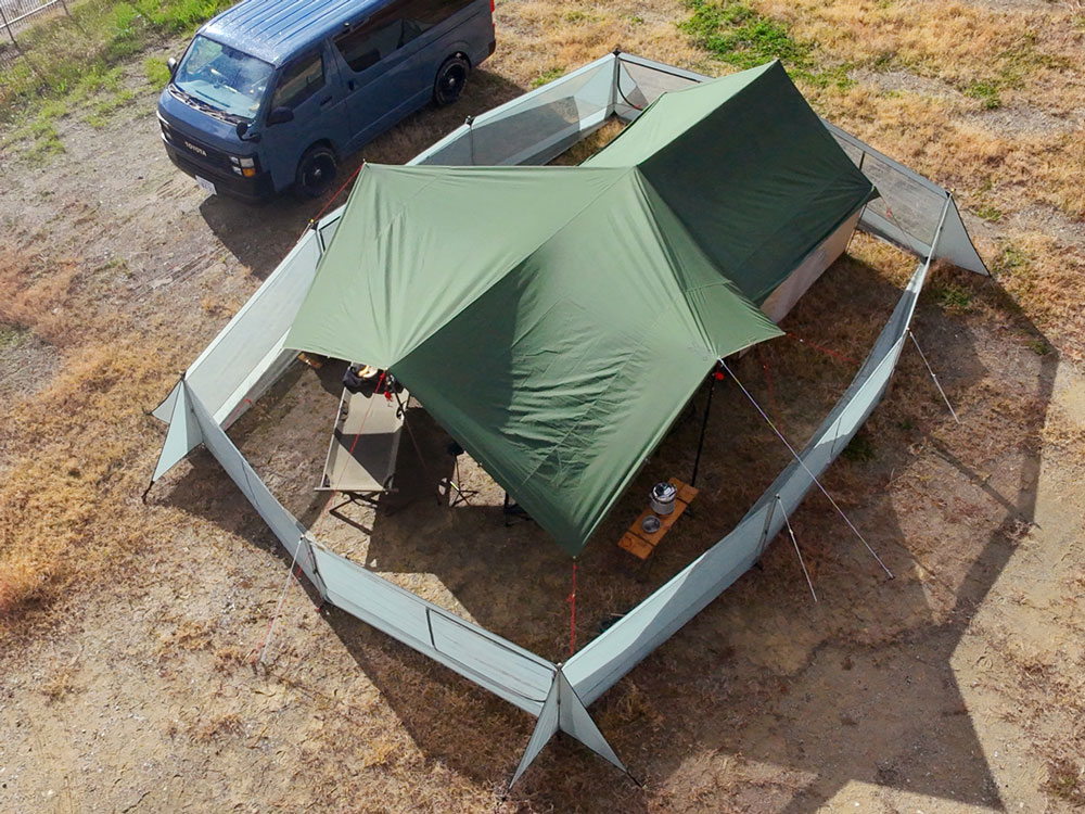 テント+オープンタープもまるっと囲める