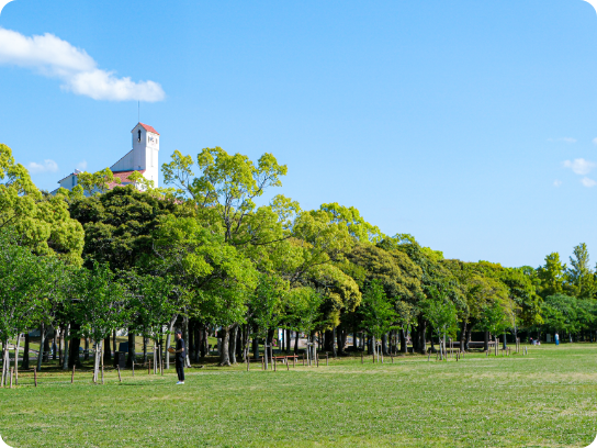 「大府みどり公園」は約9.8haの敷地面積を誇る野外活動型総合公園です。一部エリアを除き、愛犬はリード着用で同伴OKになっています。
