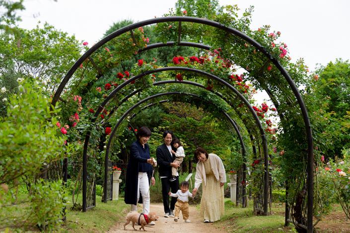 園内はリード着用で愛犬も同伴OK!広い園内は、記念撮影と一緒にお散歩を楽しむにもぴったりのスポットになっています♪