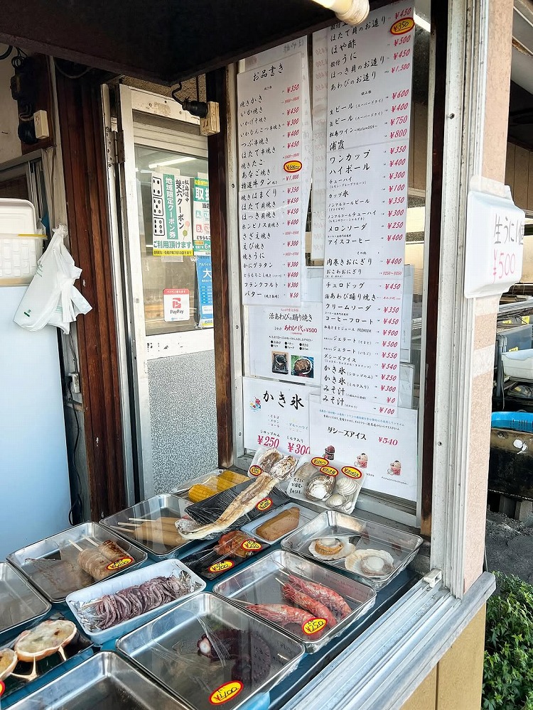 地元の海の幸や食べ歩きグルメが楽しめる人気店「杉原功商店」。
