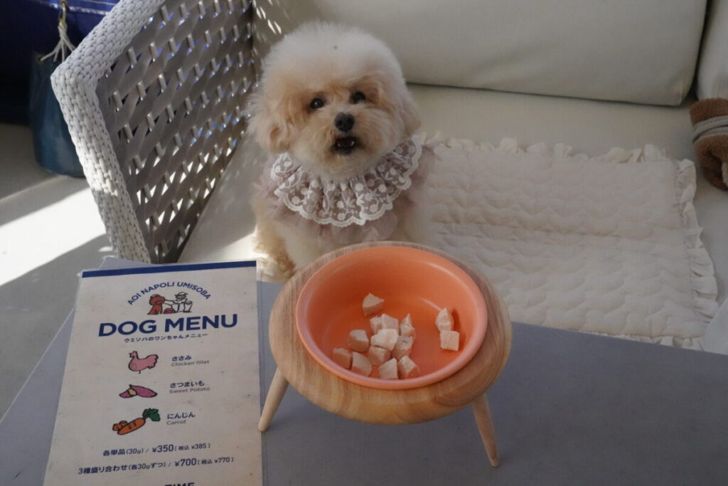 また、「GRASS 堺ウミソバ店」のレシート(当日限り有効)を「青いナポリ ウミソバ」に持って行くと、ワンちゃんメニューをサービスしてもらえる特典も!