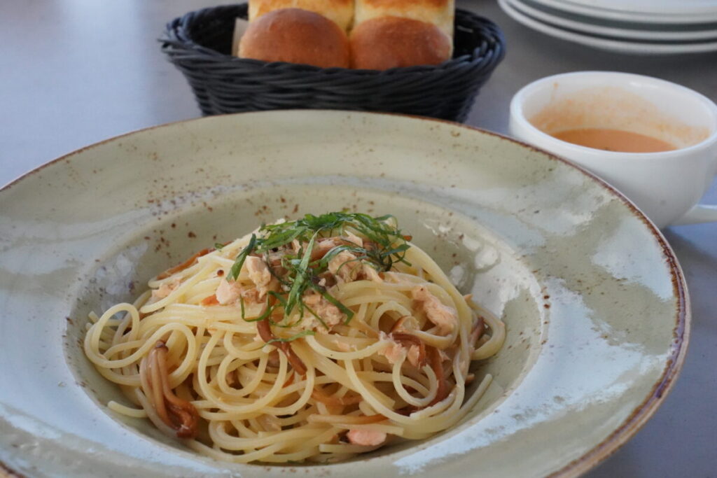 【食べる】「青いナポリ ウミソバ」のテラス席で港を望みながらのランチタイムを
