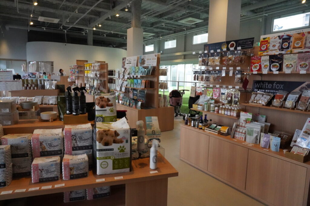 併設するセレクトショップには、国内外から厳選した高品質なペットグッズ素材にこだわったフードなどを用意。
