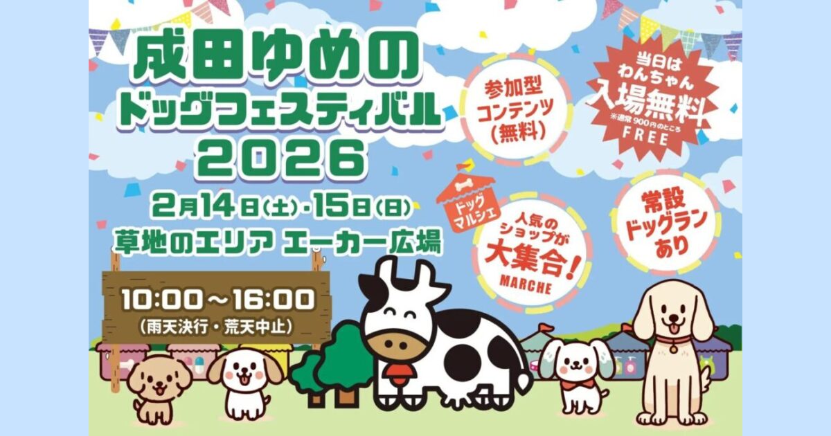 【千葉県/犬のイベント】愛犬と牧場で楽しむ週末!「成田ゆめのドッグフェスティバル 2026」開催(成田ゆめ牧場)2/14~2/15