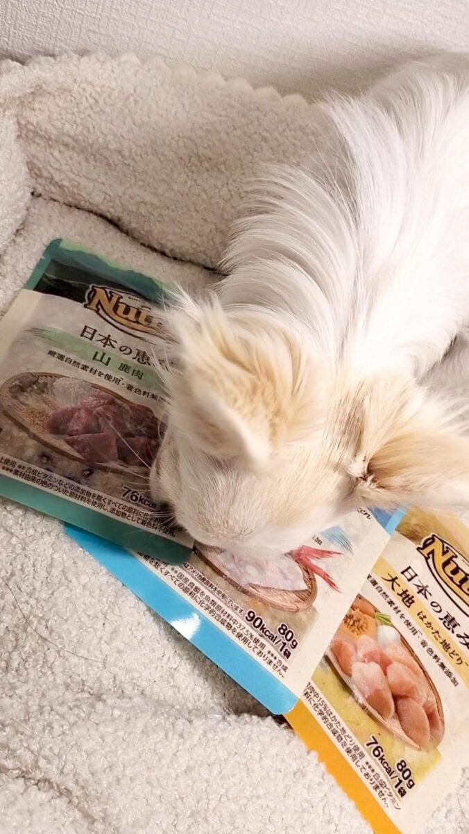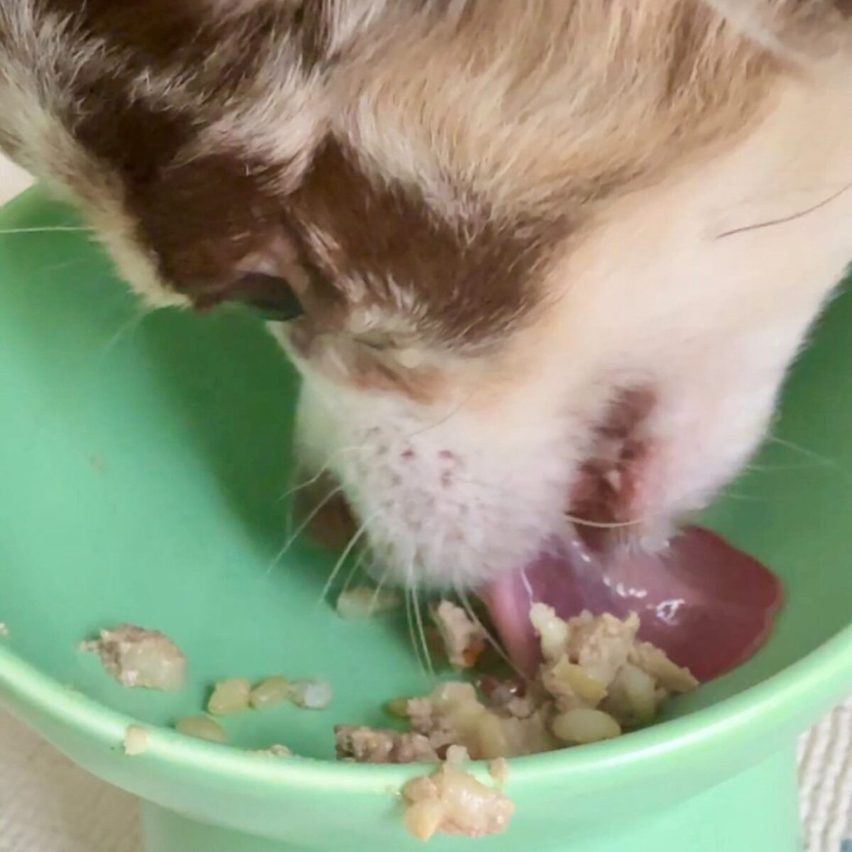 今回試したフードはレンチンすると自然な良い香りがして、いつも新しいフードにすると食べる前にクンクンして警戒するのですが、すんなり食べ始め1袋ペロリ完食しました。食べた後のうんちもいい状態で匂いも少なめでした。