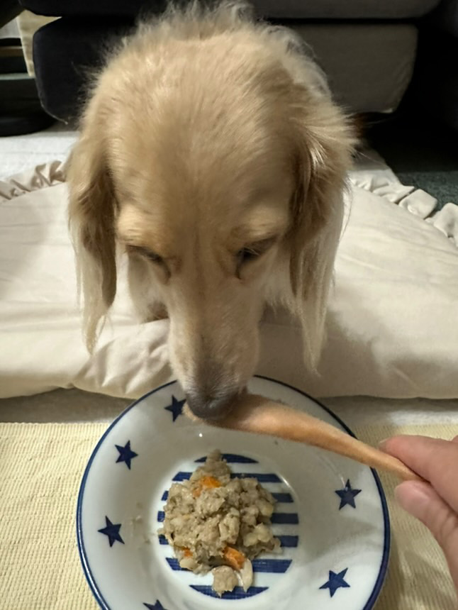 とにかく食いつきがよく、匂いをかいで待ちきれない様子でした。秒速で完食してしまい、その様子は動画に収めました!笑