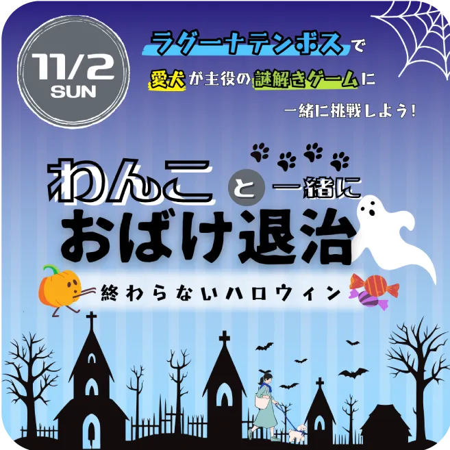 ラグーナテンボスに居座りついてしまったおばけを退治するため、愛犬と一緒になっておばけたちが仕掛けたいくつかのゲームに挑戦する体験型イベントは、単なるおでかけじゃなく特別な思い出作りになること間違いなし!
