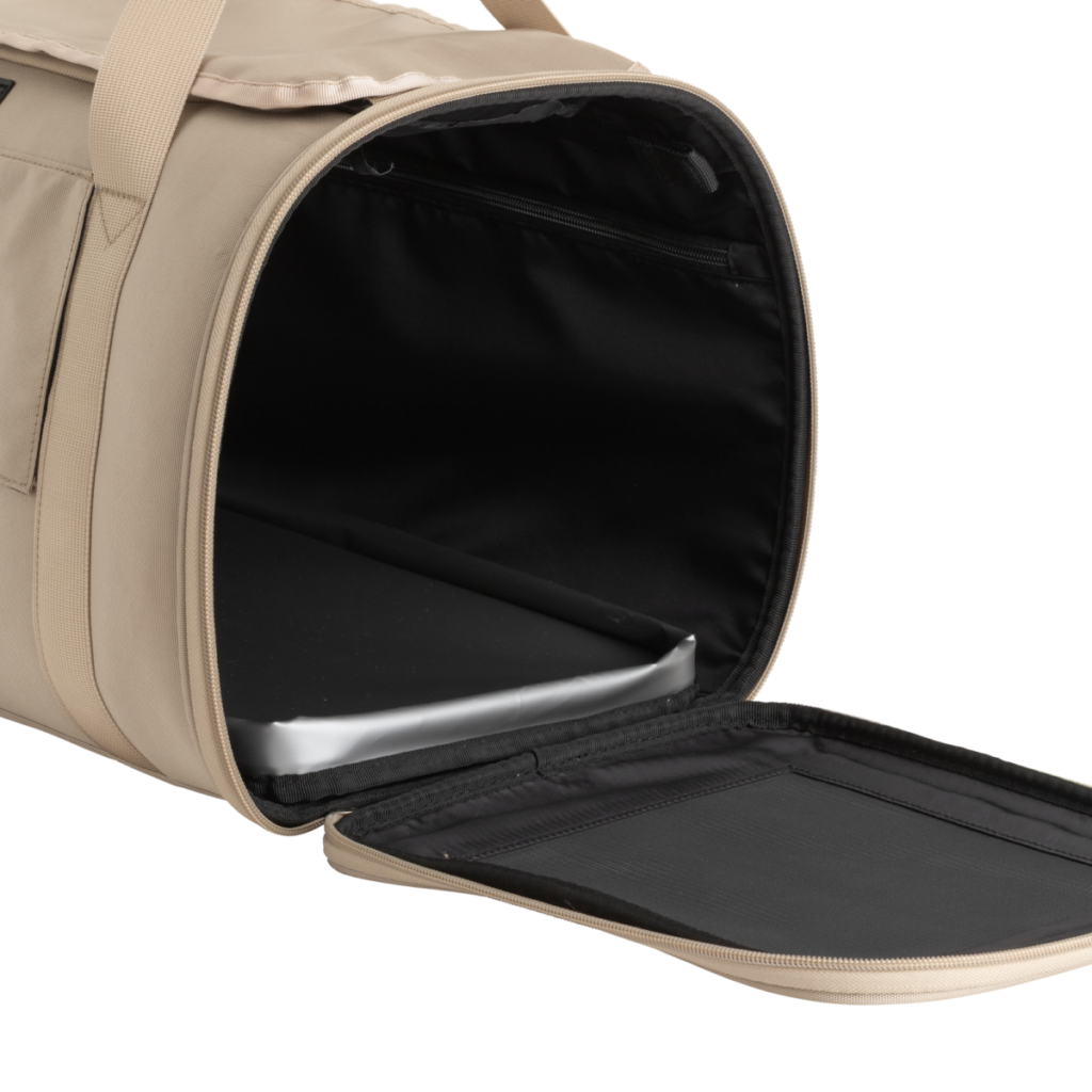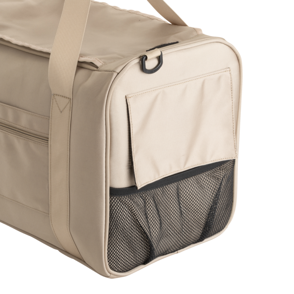 そんな課題に寄り添うかたちで登場したのが、ダッフル型キャリーバッグ『NOA』。軽量で持ち運びやすく、海外エアラインの客室持ち込みを想定したサイズ設計を採用。型崩れしにくい構造で、愛犬が快適に過ごせるよう配慮されています。