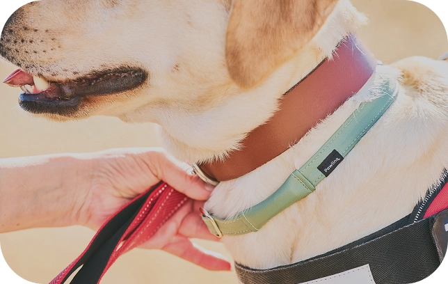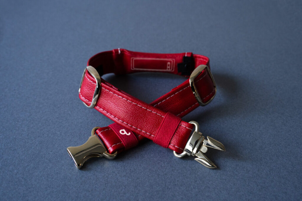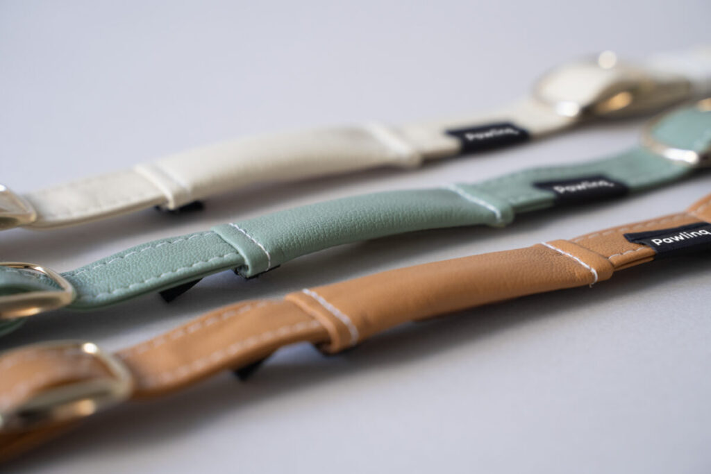 常に装着していることを第一に考え、素材には皮膚や被毛に配慮した合皮素材を採用。サラサラとした質感で摩擦が少なく、負担なく装着できます◎