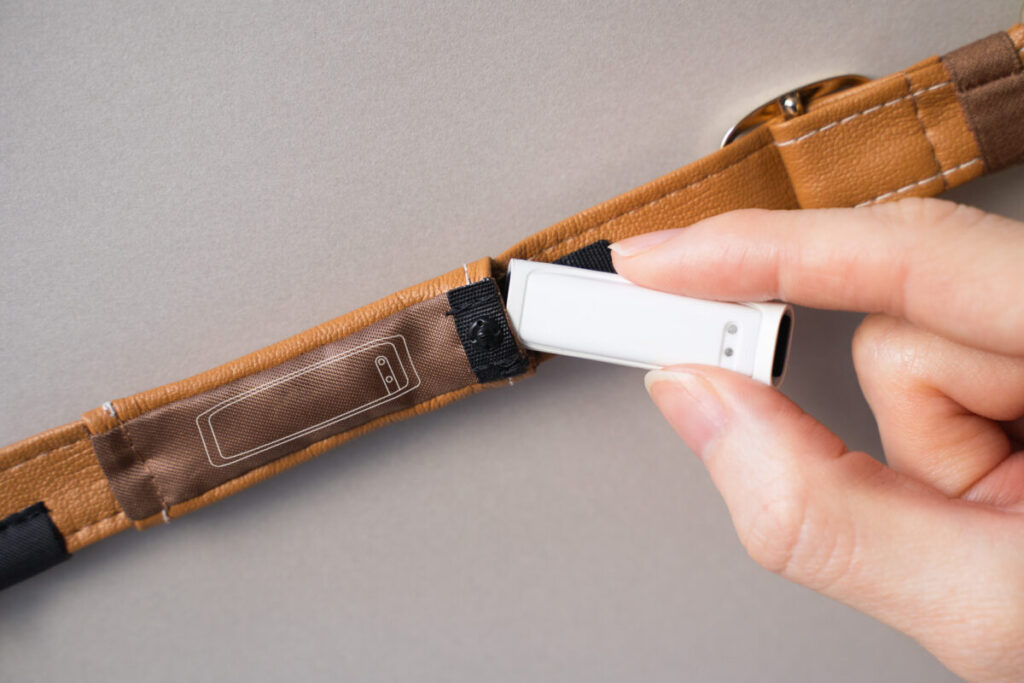また、ポケット収納方式を採用しており、首輪を噛んだり、他の犬とじゃれあったりした際の破損や紛失のリスクを最小限に抑えるよう配慮されています。