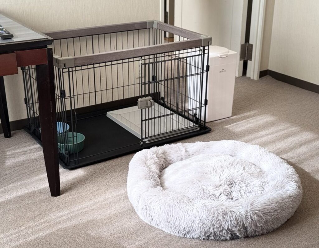 客室内には、ケージやペット用ベッド、トイレシート、ペットフード用・水用ボウル、蓋付きダストボックス、粘着クリーナーといったペット用アメニティが完備されています◎