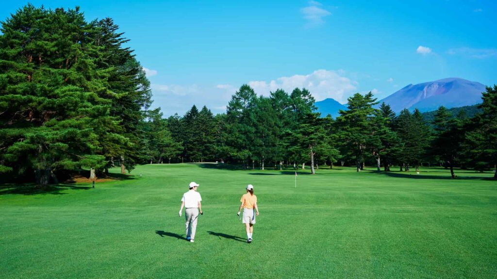 晴山ゴルフ場は、雄大な浅間山をはじめとする軽井沢ならではの景観が魅力的なコース。広々としたフェアウェーとカラマツ林でセパレートされたフラットなコースで、ゆったりとゴルフを楽しめます。