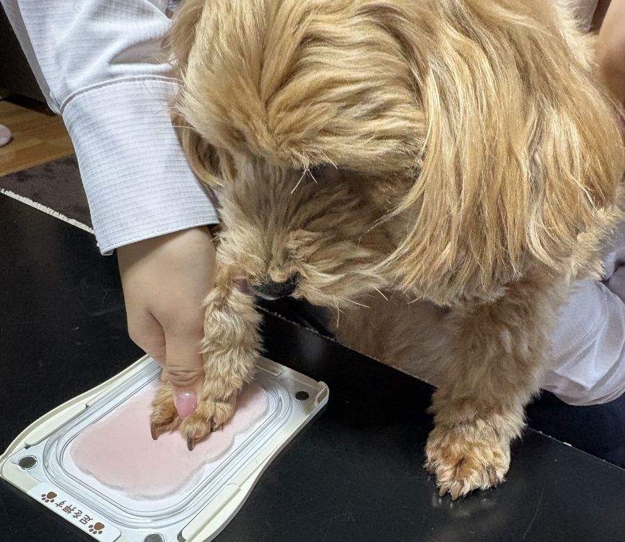 宿泊したワンちゃんの足型スタンプを桜の花に見立て、みんなでひとつの大きな桜アートを描くという楽しい体験ができます。