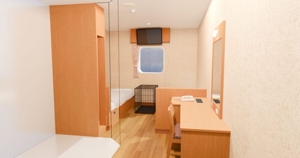 愛犬も船内で自由に過ごせるウィズペットルームも5室用意されているということで、詳しくご紹介します。