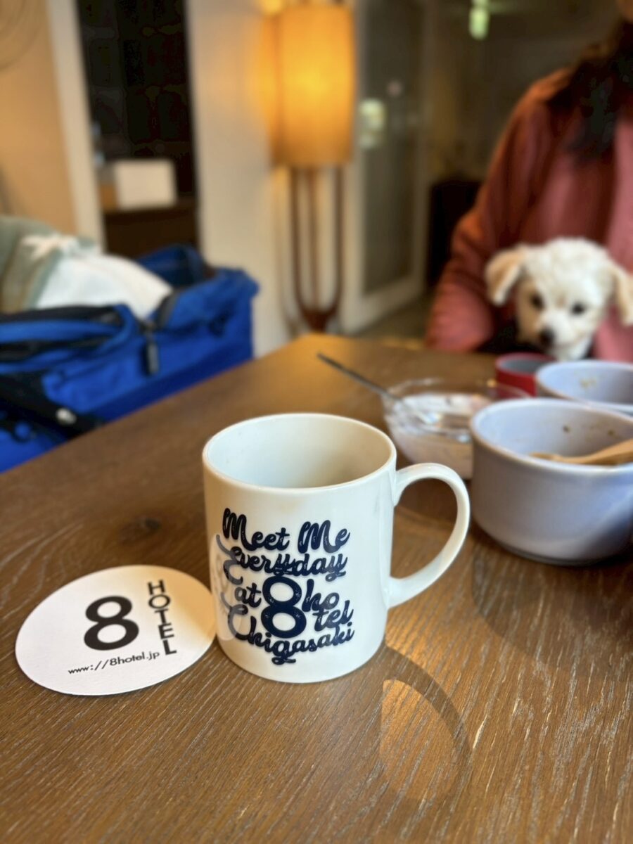 わんこも泊まれる8HotelのCafeが宿泊者以外もmorningが食べれるようになりました。 ホットドッグかミニパン食べ放題を選んで、スープやサラダ、ドリンク類のハーフビュッフェスタイルです。 居心地のいい店内で、朝7:00〜ゆっくり食べれるのが嬉しいです。