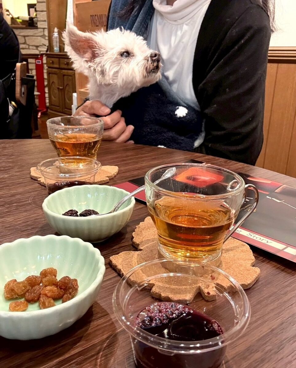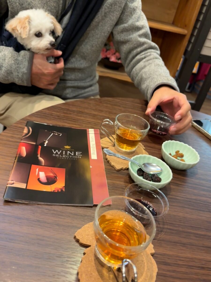 Luanaくん&Moaniくん、素敵なレポートをありがとう! Luanaくん&Moaniくんのご家族からコメントが届きました! --------- たくさんのワインが並ぶワインセラー。わんちゃんは、カートか抱っこで入店出来ます。 無料でオリジナルワインや葡萄ジュースの試飲が出来ます。葡萄ジュースのコーナーでは、テーブル席がたくさんあって、レーズンの試食も出していただけます。