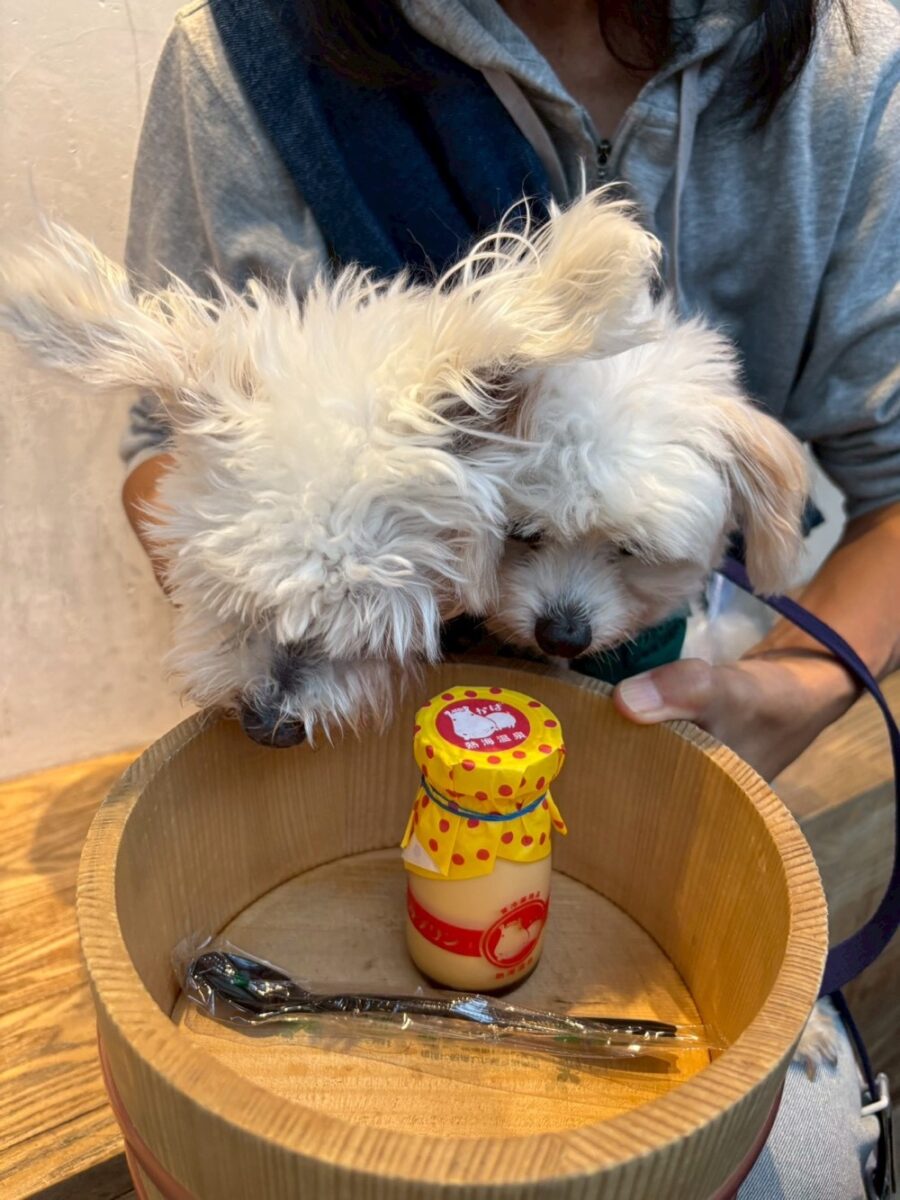 Luanaくん&Moaniくん、素敵なレポートをありがとう! Luanaくん&Moaniくんのご家族からコメントが届きました! --------- 熱海プリンの2ndは、温泉みたいな可愛い店舗です。購入したプリンは、木で出来た風呂桶に入れてくれます。わんちゃんと一緒に、店舗前のベンチで食べれます。