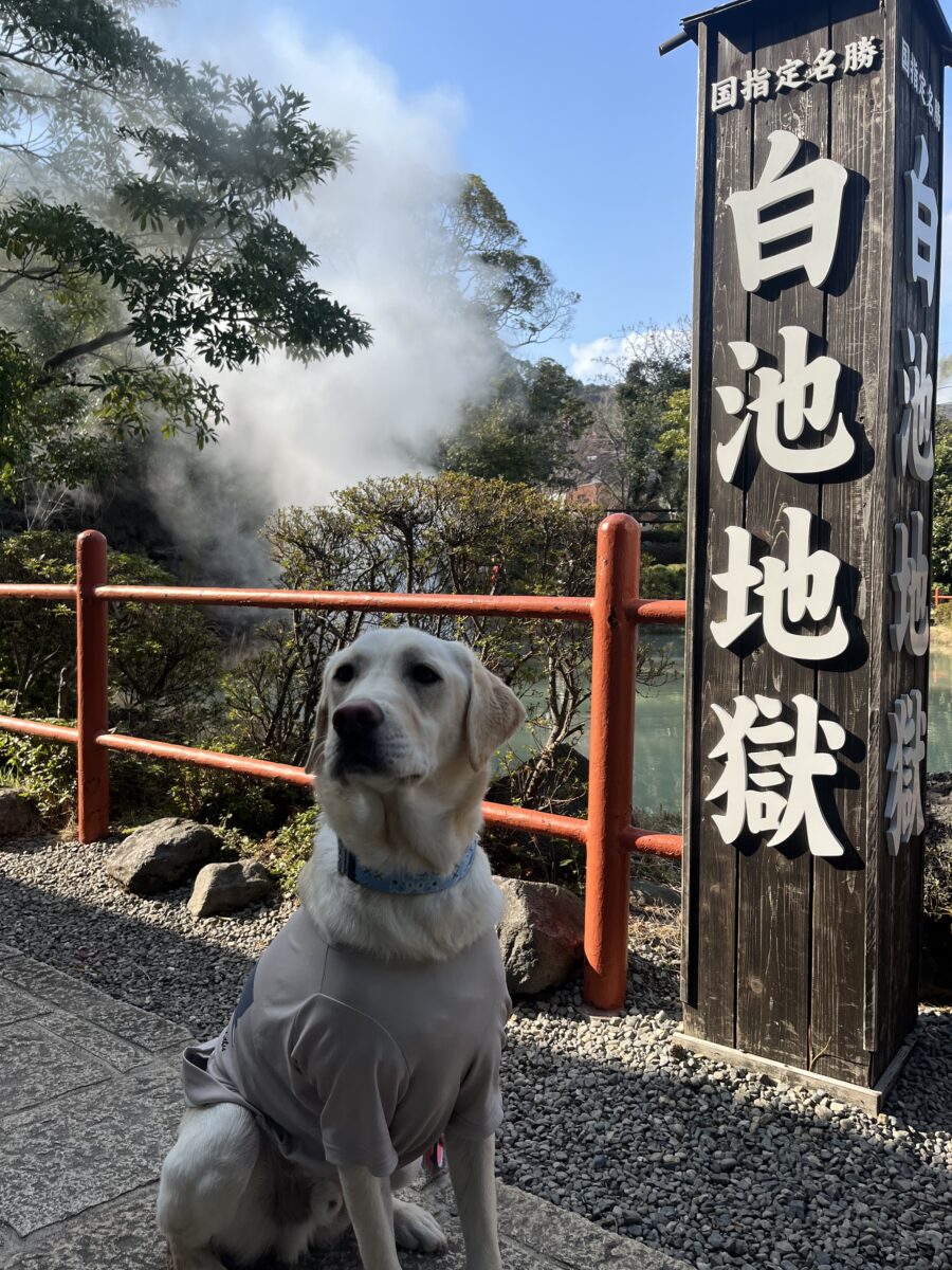 お散歩しながら別府地獄めぐりができます! 7つの地獄すべてを巡る場合、 だいたい1時間〜2時間くらい? 途中休憩しながらソフトクリームなど楽しめます。 出来立ての温泉卵は、いつもの茹で卵よりも美味しかったらしく、食いつきが全然違いました!!