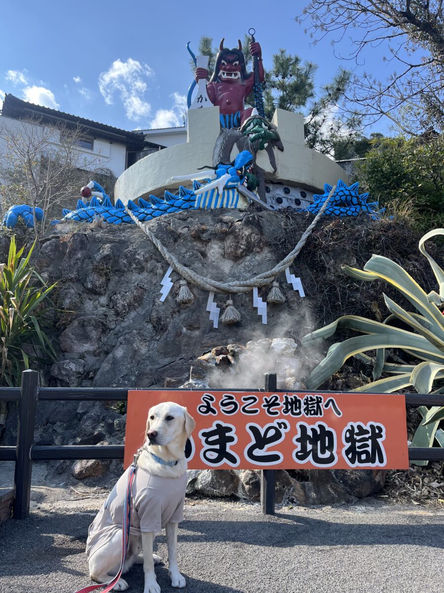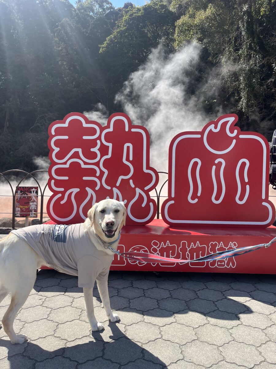 お散歩しながら別府地獄めぐりができます! 7つの地獄すべてを巡る場合、 だいたい1時間〜2時間くらい? 途中休憩しながらソフトクリームなど楽しめます。 出来立ての温泉卵は、いつもの茹で卵よりも美味しかったらしく、食いつきが全然違いました!!