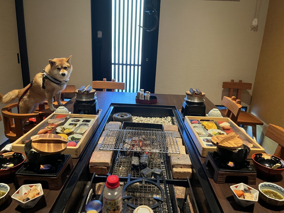 それぞれが独立したお部屋でお部屋にも温泉が! オールインクルーシブでたくさんの種類のドリンクやお酒も、駄菓子やプリン、アイス、ヨーグルトも食べ飲み放題。 ワンコとずっと一緒に過ごせる落ち着いた素敵なお宿です。 ドッグランもあり我が子大満足。貸切風呂も広くてとってもいい感じ(ココだけはワンコNG) 食事は囲炉裏のある個室で。ワンコ用の丸い椅子めちゃくちゃかわいい。スタッフさんもみんな親切でフレンドリーです。また行きたいなぁ。