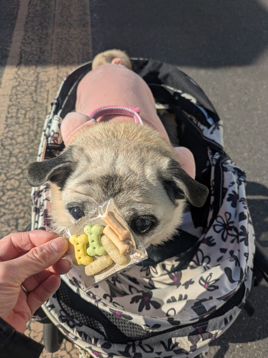 店内わんこ可能。カフェマット使用でイスも座れます! わんこメニューが多く、ランチ・ディナーどちらでいってもみんな美味しく楽しく過ごせます! 帰りにお土産もらっちゃった!