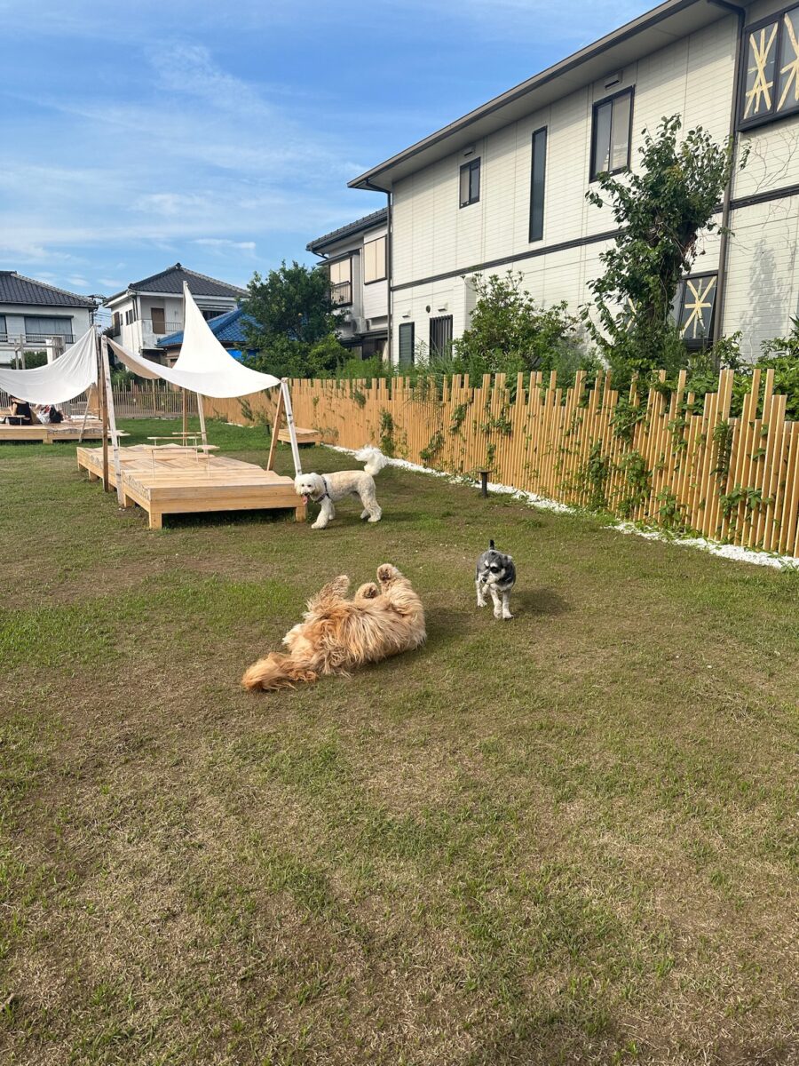 日帰りドックランで利用しました。 ドッグランの中には、造作物がたくさんあり障害物競争のようで 非常に楽しめました。 始めは一般的なフラットなドックランではないから「どうなんだろう」と 思っていましたが、予想以上に楽しめました。 今回は虹のオブジェがありましたが,季節ごとに変わるそうです 次回はどんな装飾になっているか楽しみです