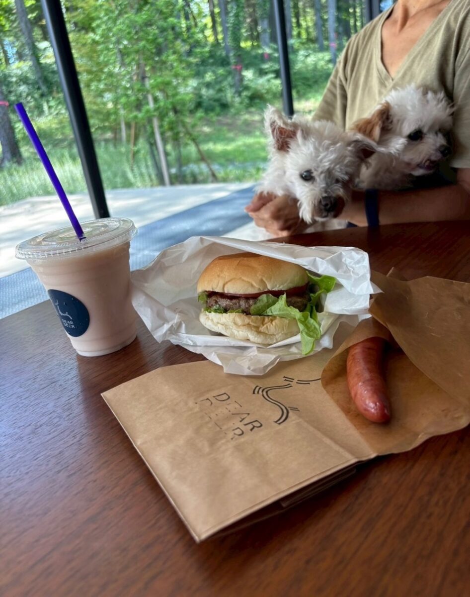 Luanaくん&Moaniくん、素敵なレポートをありがとう! Luanaくん&Moaniくんのご家族からコメントが届きました! --------- ジビエ加工工場併設のTakeout専門カフェ。敷地内には、屋根付きテラス席や、自然を満喫しながら食べれるベンチもあって、わんちゃん用は、オリジナルジャーキーがあります。道の駅富士吉田の横なので、ドッグランもあります。