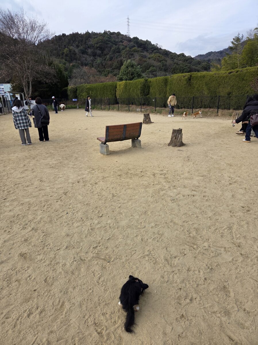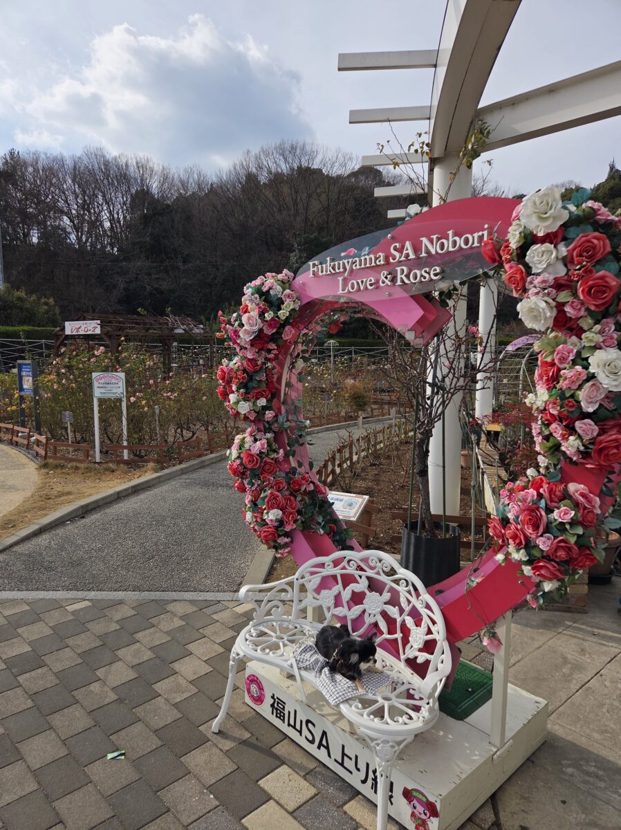 ドッグランの中央付近にはベンチがあり、広々していて自由に過ごす事ができました。 ばらのまちの福山はSA内にバラ園があり、ドッグランへ行く途中も楽しめます。