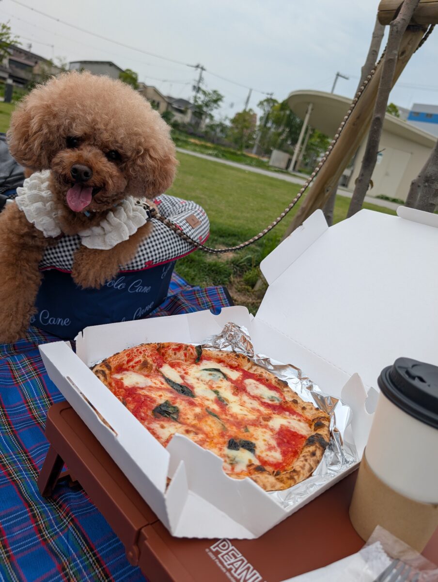 公園の中にあるので、お散歩の時に利用しやすいです。ワンちゃんはテラス席ですが屋根付きで夏は大きな扇風機冬にはテーブルがコタツになり大きなヒーターもつけてくれますので寒い日でも暖かいです。ワンちゃん用のピザなどもあります。 テイクアウトも可能なので芝生でピクニックをして楽しむことも出来ますよ。