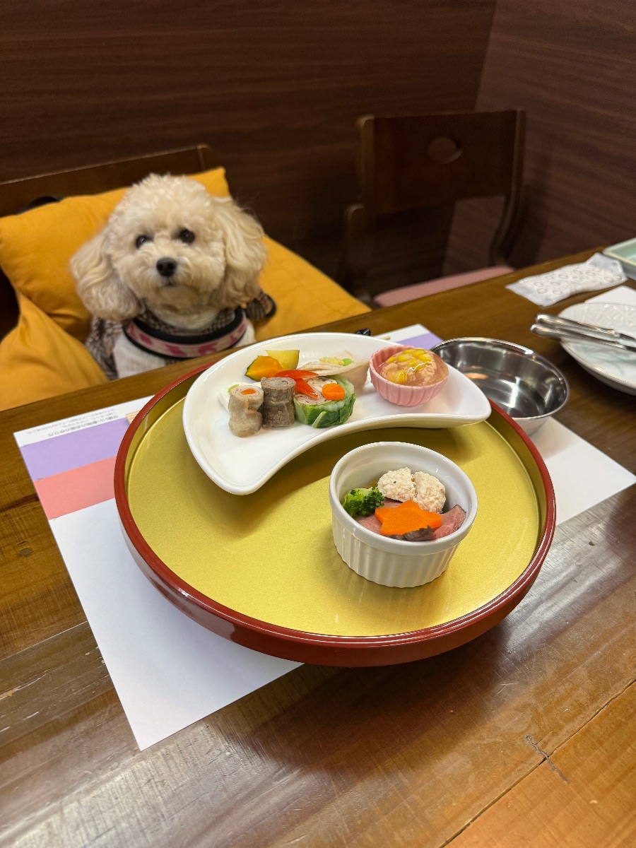 わんこ用の懐石料理はめずらしい! 思わず撮影したくなりますね〜 また屋外ドッグランは24時間OKなので夜のお散歩やトイレにも安心ですね! 室内ドッグランもありますよ お得な【わんわんDay】も見逃せない!