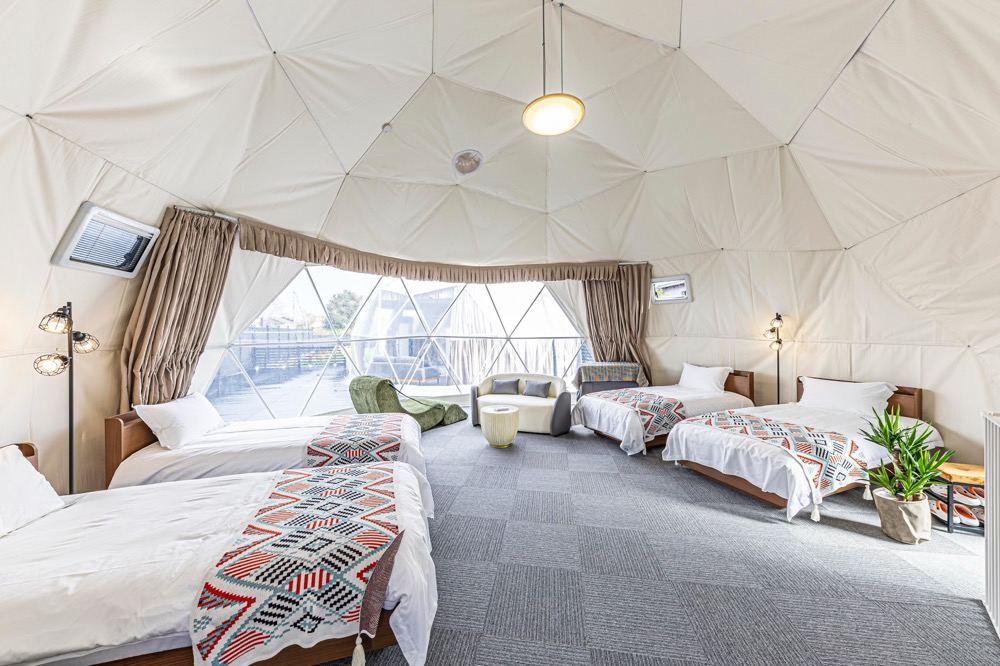 滋賀・琵琶湖畔に誕生した「Galaxy Glamping Dog Premium(ギャラクシーグランピングドッグプレミアム)」は、愛犬とともに贅沢なアウトドアステイを楽しめる最高級グランピングリゾートです。 大阪から車で約90分とアクセスも良く、自然に囲まれた広大な敷地で特別な時間を過ごせます。 1日2組限定の完全プライベート空間なので、周囲を気にせず家族も愛犬ものびのび。 各棟にはプライベートドッグランを完備しており、リードなしで安心して遊ばせることができます。 大型プライベートジャグジーやサウナ、プール(※愛犬の入水は不可)でリラックス。 さらに、天然温泉の貸切湯も用意されていて、旅の疲れをゆっくり癒せます。 夕食は近江牛や近江地鶏を使った特製BBQを専用スペースで堪能。 夜は焚き火と満天の星空の下で、家族と愛犬の絆を深めるひとときを過ごせます。 クリアドームのフリーBARではドリンク飲み放題。 自然の景色を眺めながら、わんちゃんと一緒に優雅な時間を満喫できる、特別感あふれるグランピング施設です♪